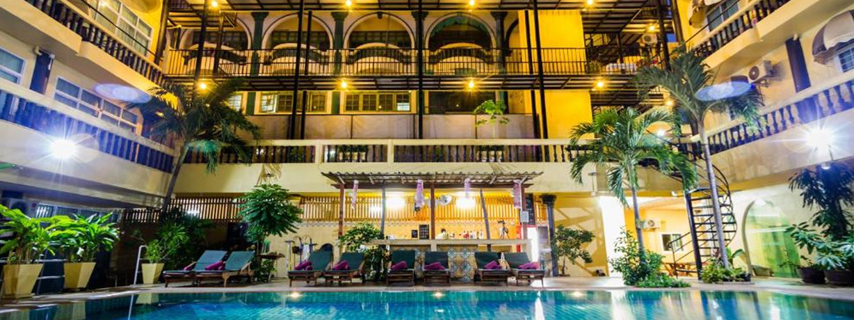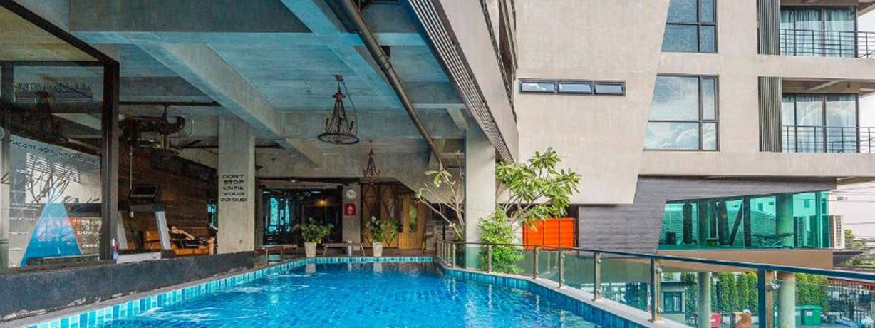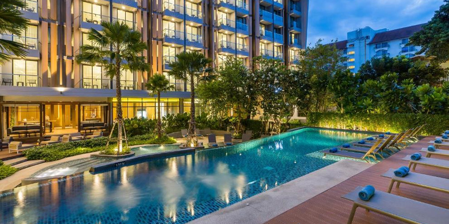 ジョムティエンビーチまで徒歩数分のブティックホテル。派手すぎないリゾート感と、落ち着いた大人の雰囲気がバランス良く共存しています。プールを囲むように客室が並び、外には喫煙スペースもあり。「ビーチにも出たいけど、ホテルのプールサイドでもチルしたい」という人にちょうどいいポジションです。